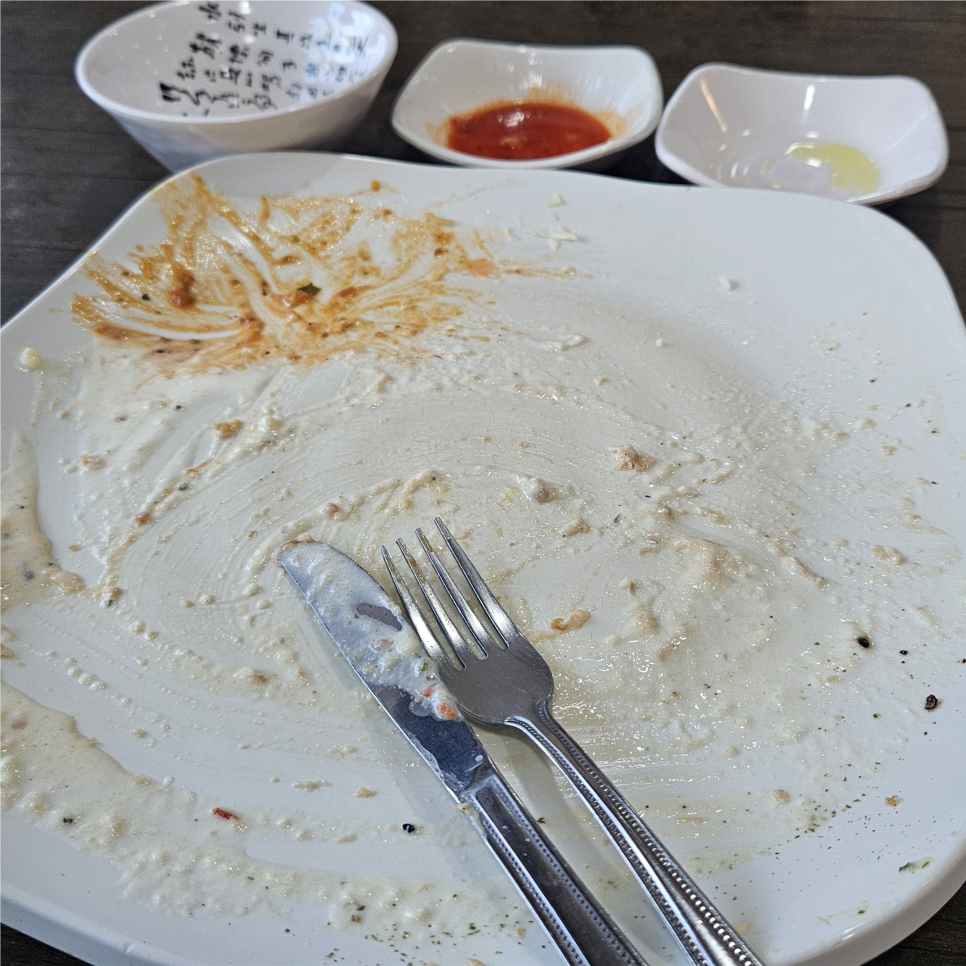 페퍼론치노가 들어가서 그런지 매콤한 느낌도 있어서 막 느끼하다고는 생각이 안 들었어요.