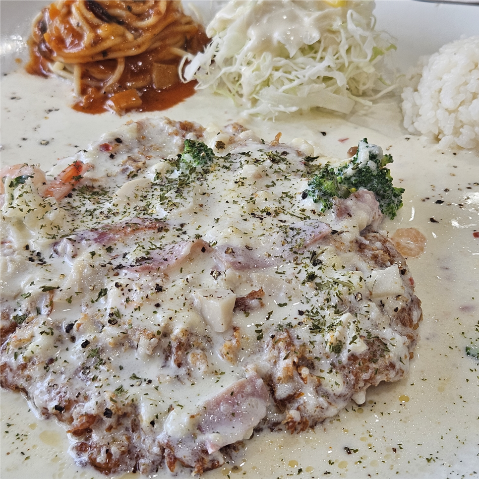 크흐 돈까스와 함께 나오는 샐러드와 스파게티!!