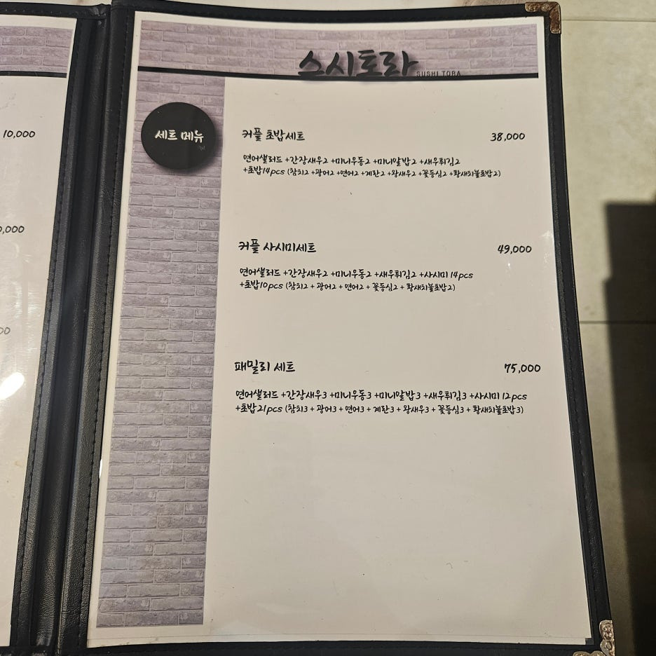 신랑이는 특선모둠초밥과 날 것을 못 먹는 솔리비는 어린이 초밥으로 주문을 하였습니다.