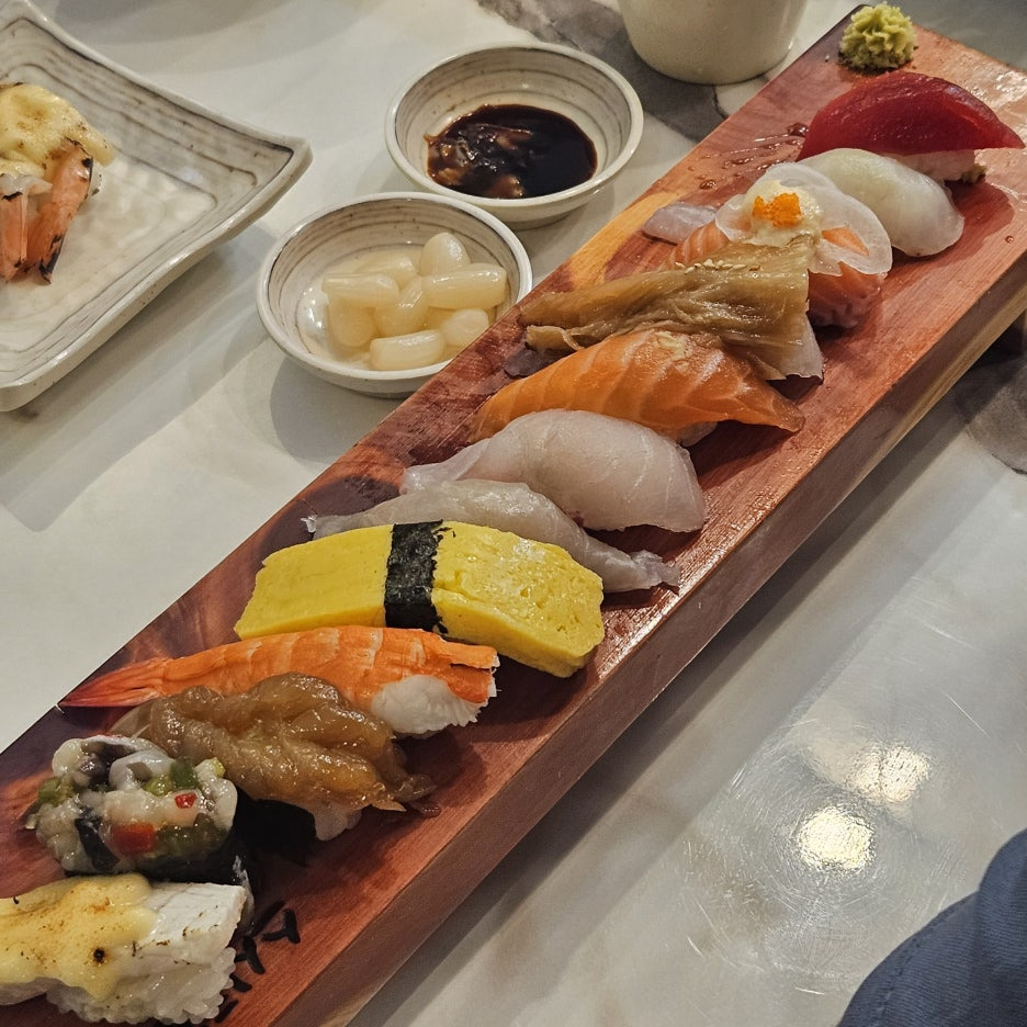 그리고 신랑이가 시킨 특선모둠초밥(₩17,000)은 참치 1p, 연어 2p, 광어 2p, 계절생선 2p, 계란 1p, 초새우 1p, 간장새우1p, 타코와사비군함 1p, 불초밥 1p 총 12p입니다.