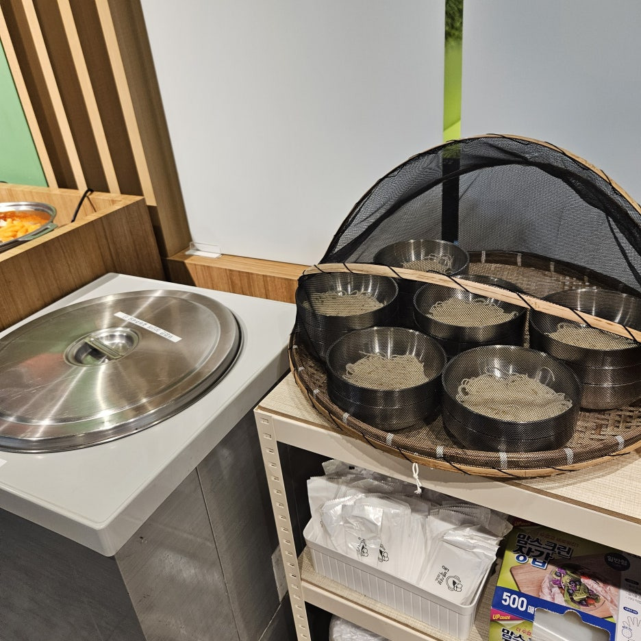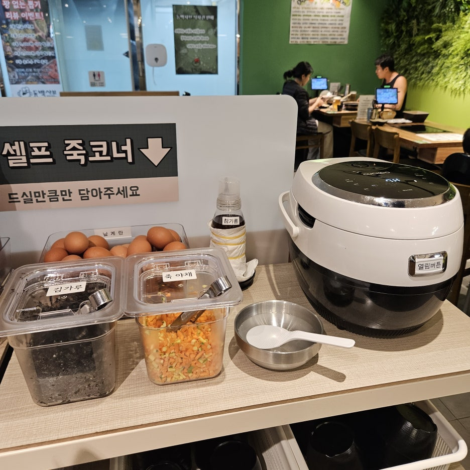 그 외 식전이나 식후에 먹을 떡볶이와 사과푸팅, 푸실리 파스타, 월남쌈, 라면사리, 열무김치와 죽코너도 비치 되어있어요.