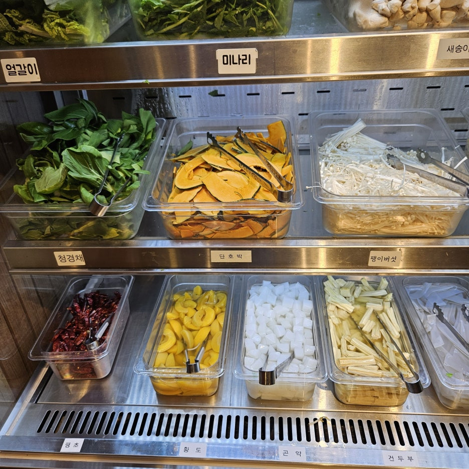 메뉴에도 보이는 것처럼 하나의 냄비에 반반으로 두가지 육수를 드실 수도 있으니 일행과 육수취향이 맞지 않다면 반반 육수를 추천드려요!!