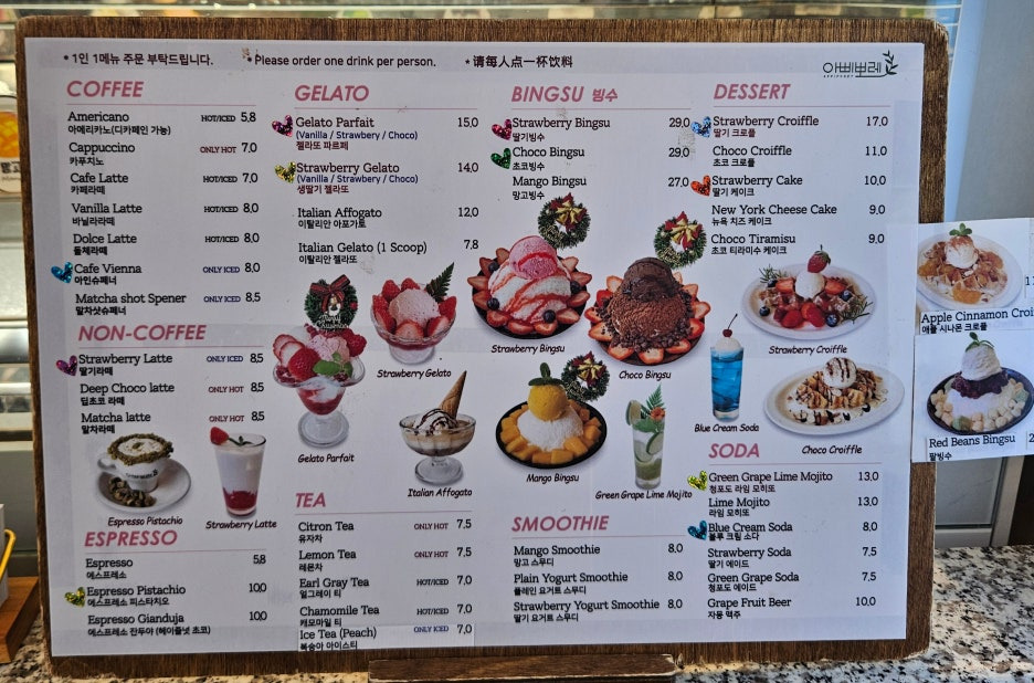 화면메뉴판외에 카운터에 붙어 있는 포스터에서 실물 디저트를 볼 수 있어서 이렇게 포스터 메뉴들도 가지고 와봤답니다.