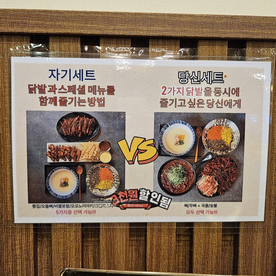 원래는 숯불닭발파인데 이날을 비도 오고 안 먹어본 메뉴를 시켜보자해서