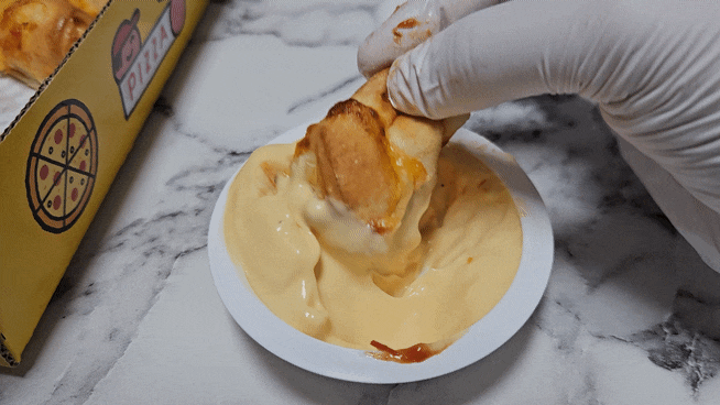 그리고 끝에 바이트 부분도 빵속의 치즈때문인지 바이트에 살짝 뭍은 소스때문인지