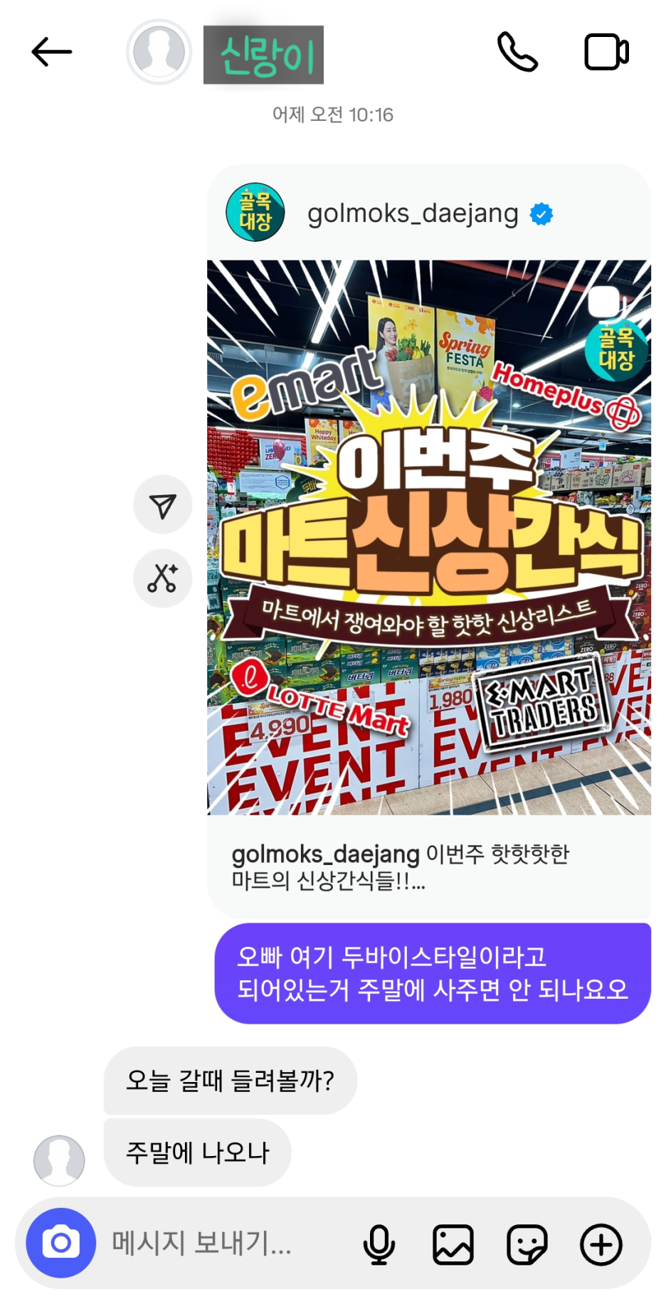 인스타를 보다가 신상과자리스트에 요아이들이 있길래 신랑이에게 부탁을 했답니다.