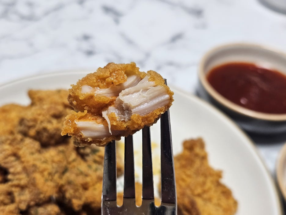 한입 단면이에요~ 치킨결이 살아있죠??