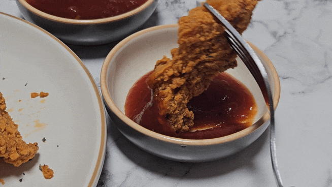 아! 소스는 매콤양념소스라해서 맵찔이 솔리비는 살짝 겁이나 비교겸(?) 집에 있는 치킨양념소스도 같이 곁들여 먹어봤어요.